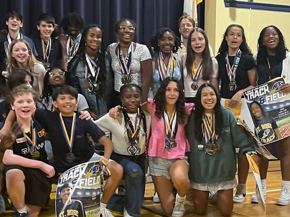 The Ravens Nest was full of cheers on Tuesday as SRLA celebrated at the Sports Banquet. Athletes from the Cross Country, Volleyball, Basketball, and Track & Field teams were recognized for their wins and all their hard work. In addition, 8th Graders Mallie Farmer and Harcourt Lucius II were honored with the Spirit of the Raven award.